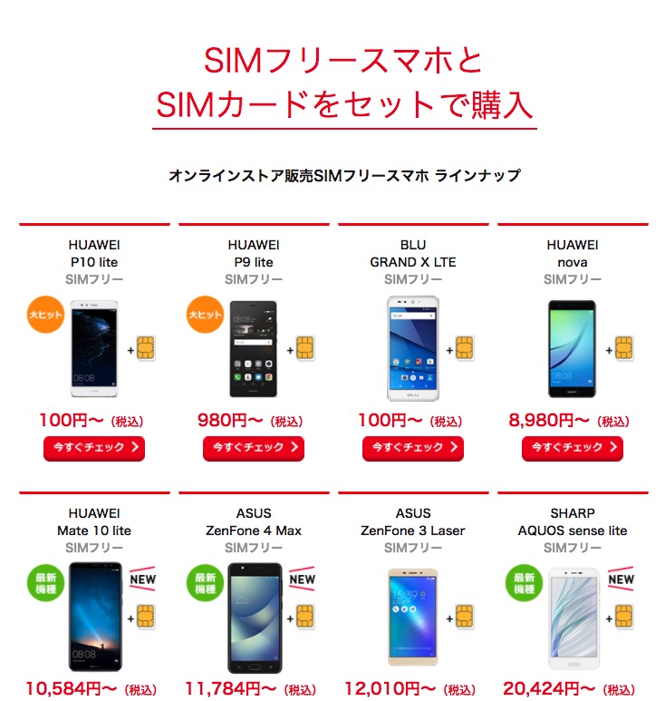 対象機種には980円の機種もあれば、なんと!100円で契約することもできる機種もあるのです!100円ですよ!100円!