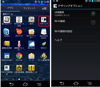 機種によっては、「ツール」というフォルダの中に入っているので、その中からテザリングというアプリを探す。
